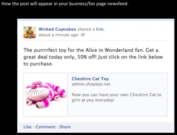 • Mẫu quảng cáo gồm 1 hình ảnh + text được lấy tự động từ 1 post trong Fanpage